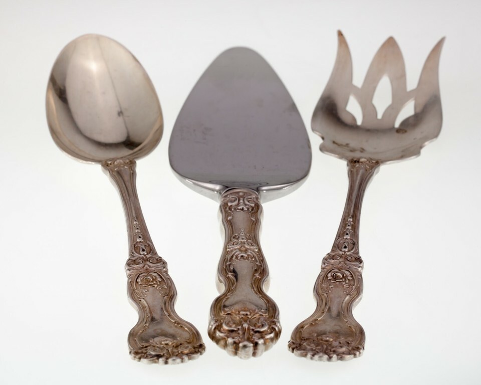 - Wallace Sterling Silver Fork, Spoon, and Cake Server Set