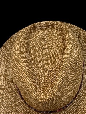 - Wallaroo Hat Company Womens XS Petite Sedona Fedora Paper Braid Red Striped Band
