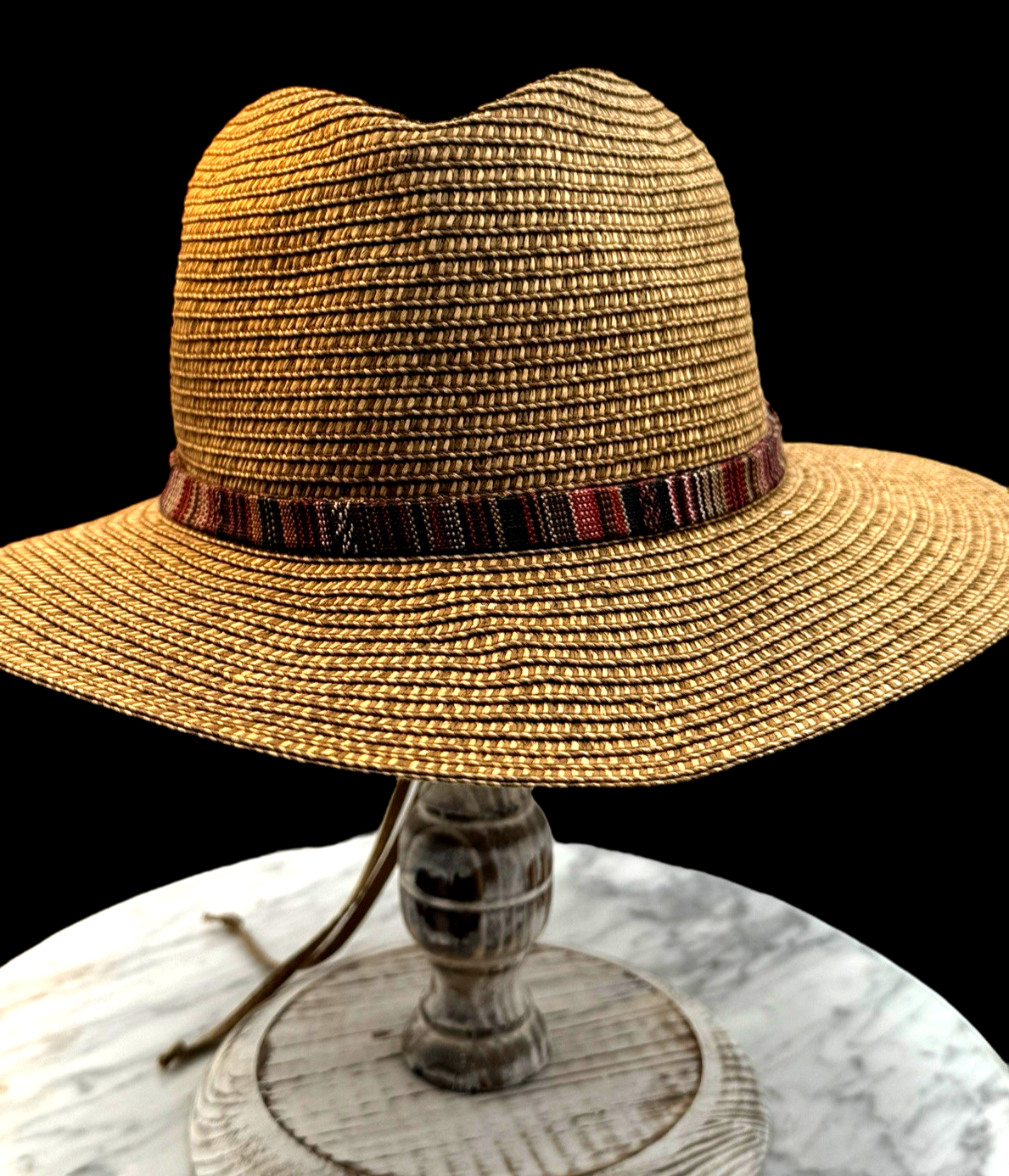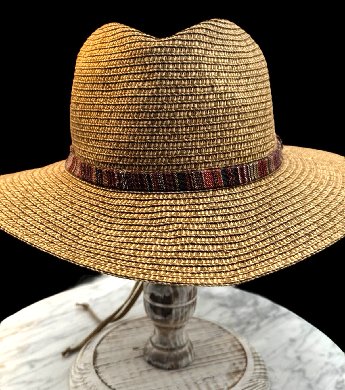 Wallaroo Hat Company Womens XS Petite Sedona Fedora Paper Braid Red Striped Band