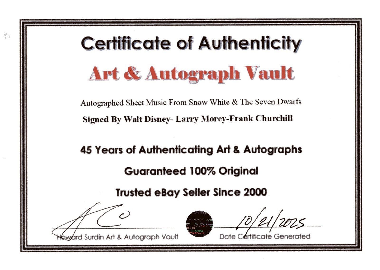 - Walt Disney Signature plus 2 other Signed Sheet Music Museum Framed