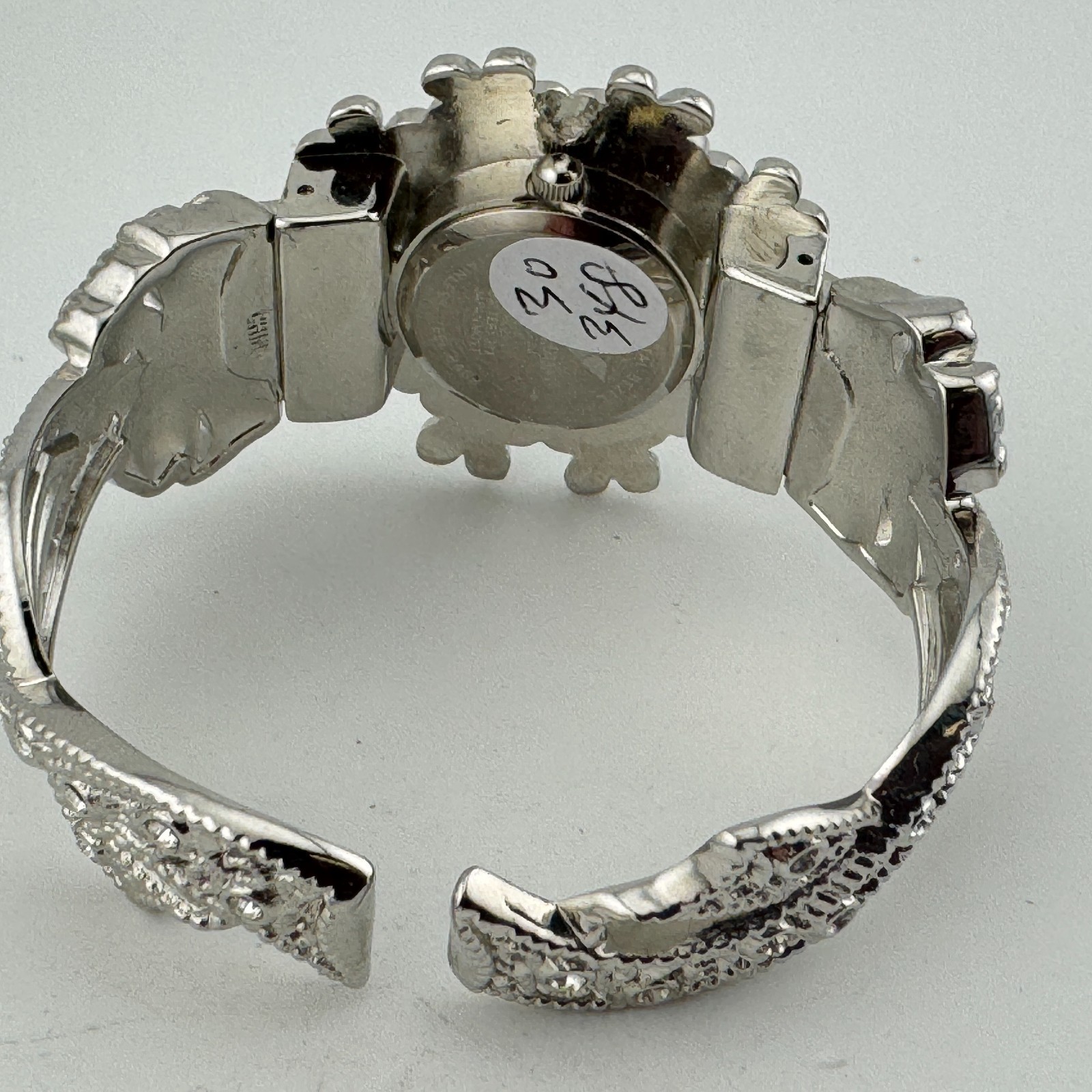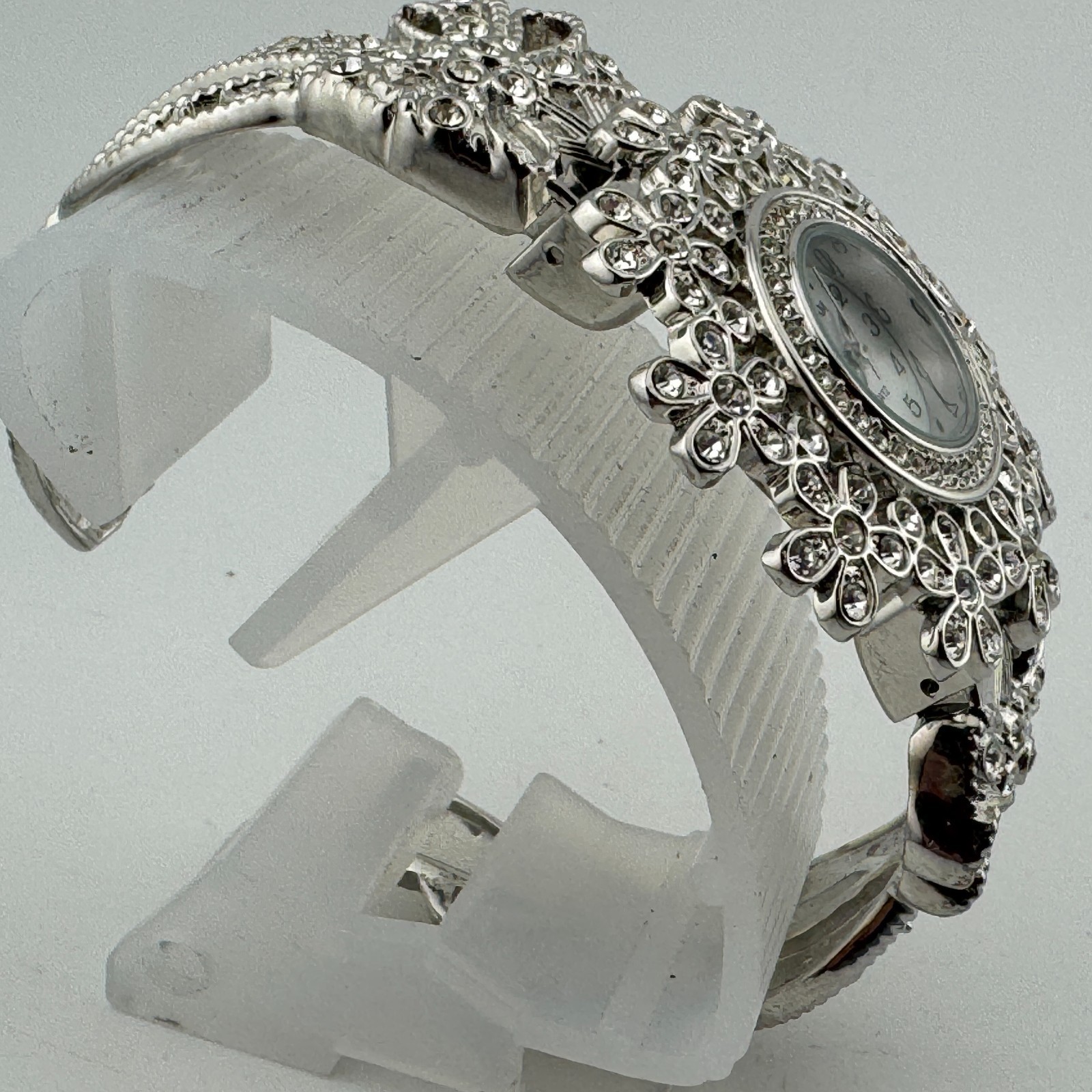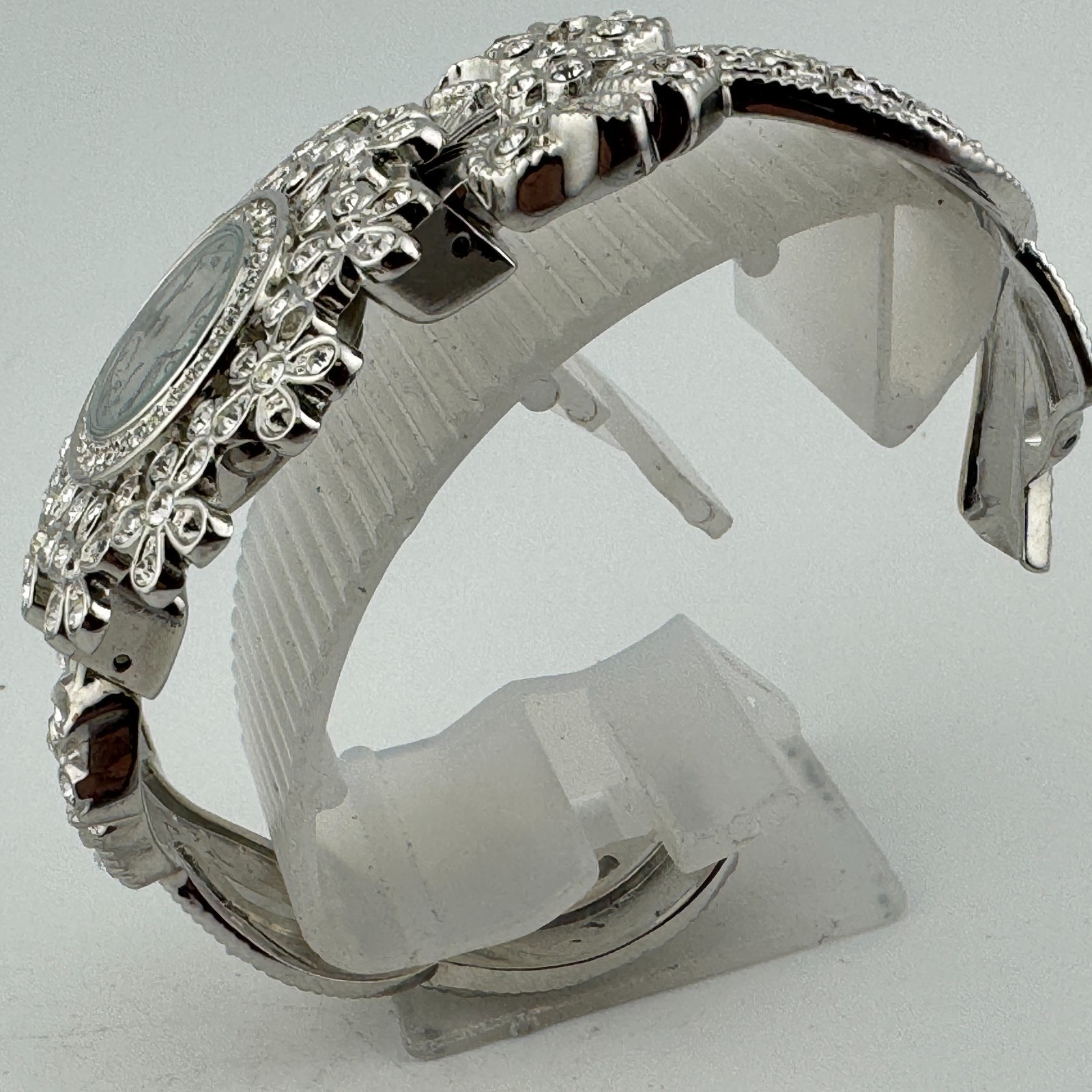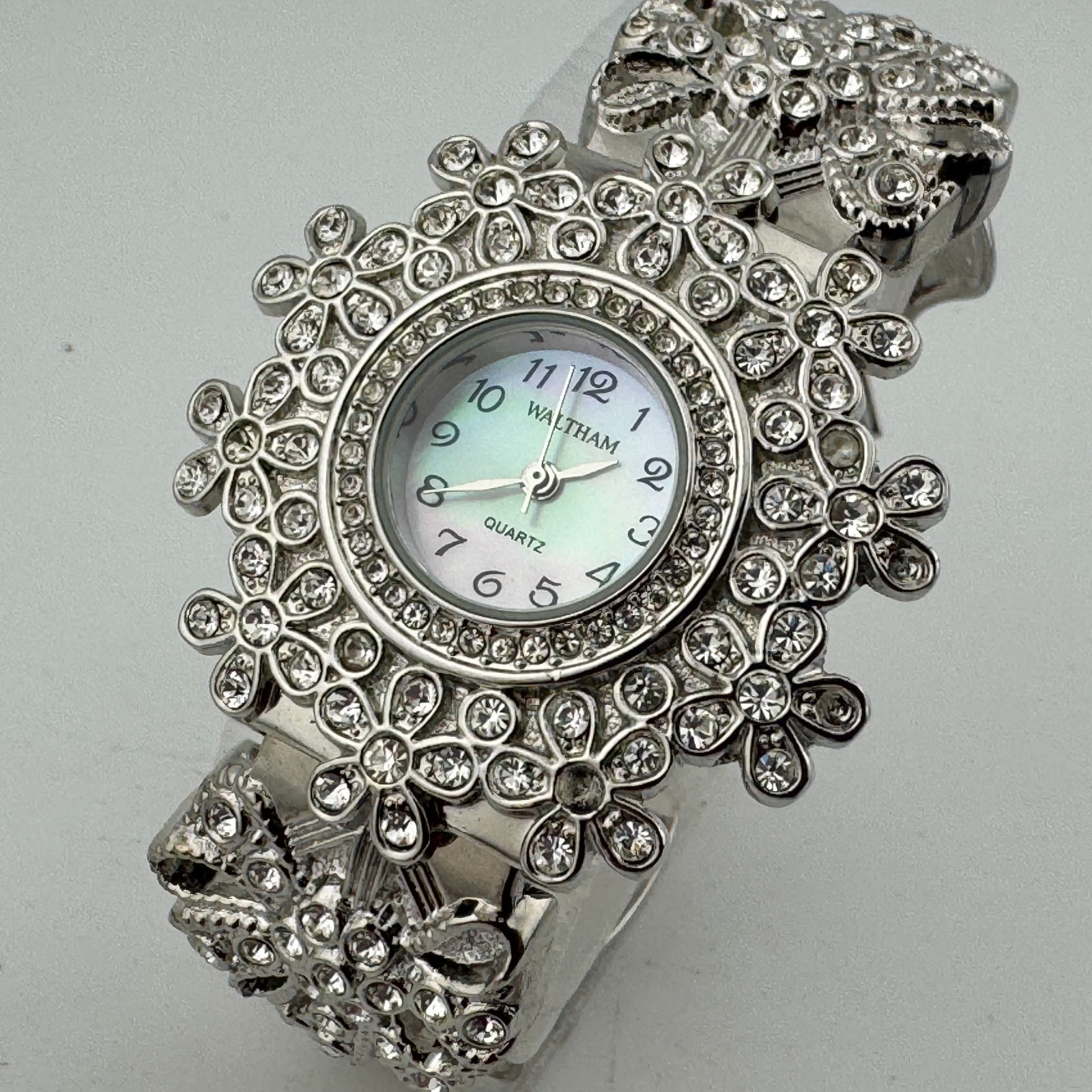 - Waltham Quartz Watch Women Silver Bling Crystals Cuff Bangle Analog New Battery
