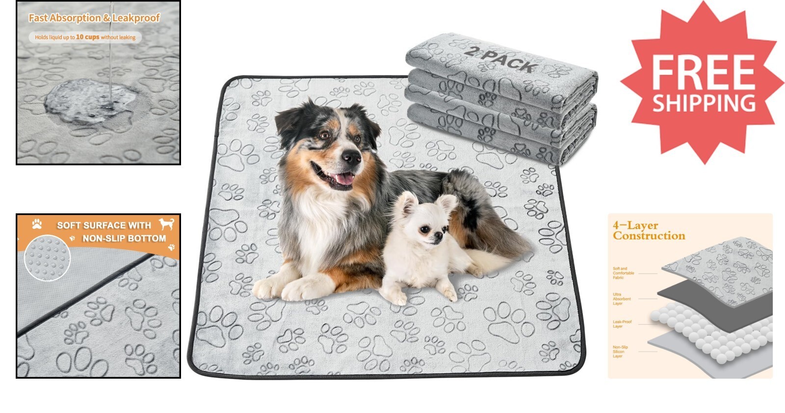 - Washable 41"x41" Reusable Puppy Pads - 2 Pack Non-Slip Leakproof Training Mats