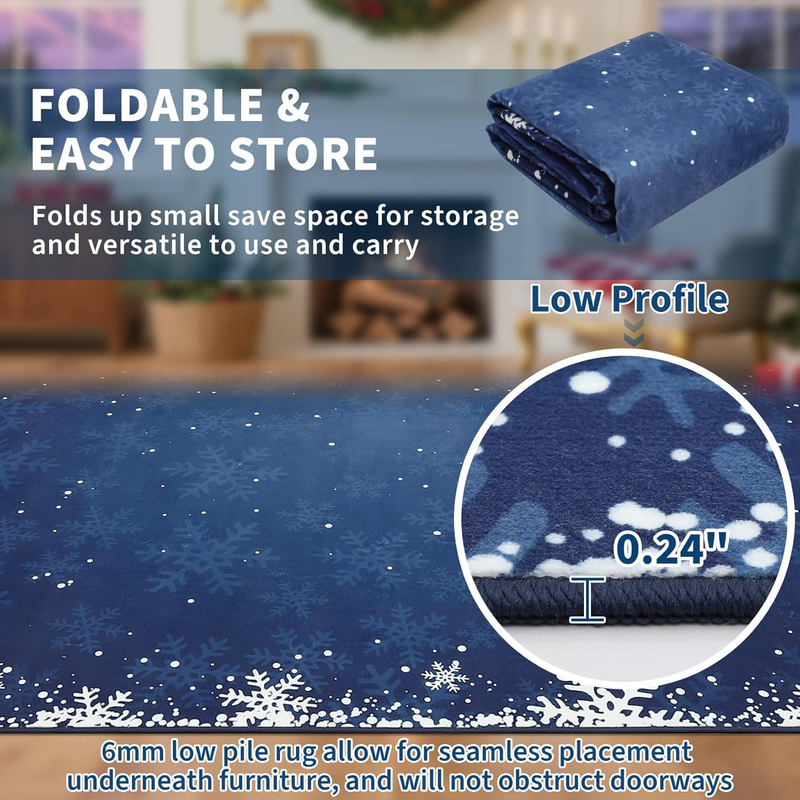 Washable Rug 3X5 Small Bedroom Rug for Holiday Non Slip Christmas Snowflakes Din