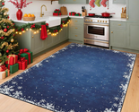 Washable Rug 3X5 Small Bedroom Rug for Holiday Non Slip Christmas Snowflakes Dining Room Throw Carpet Low Pile Xmas Decor Mat Christmas Festival Decoration Rugs for Living Room Nursery Kitchen, Blue