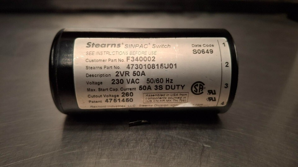 Description: Washer SWITCH MOT 50AMP 260VCO W/ELMO FOR ALLIANCE SPEED QUEEN HUEBSCH UNIMAC P/N: F340002 [USED];