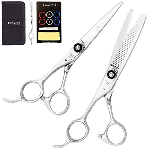 Product description: This is a great set for new stylists, students, or anyone looking for a shear set that?s a great value. These are high quality, offset shears that will last many years. The set comes with the 5.5? shear, a 30 tooth thinner, finger inserts, oil cloth, and a Washi case to keep everything together.