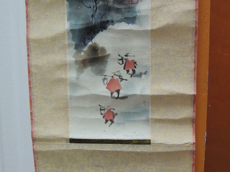 - Watercolor Painting 24.5"x3.75"+ Three Kings signed Jerome Gaston Scroll 52"x8"