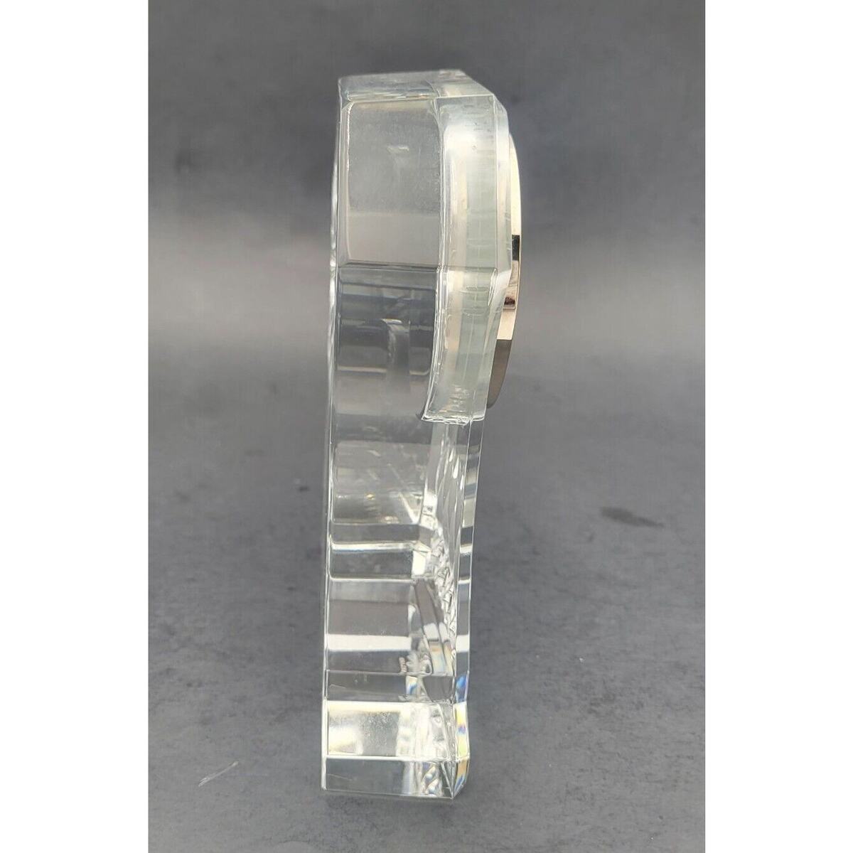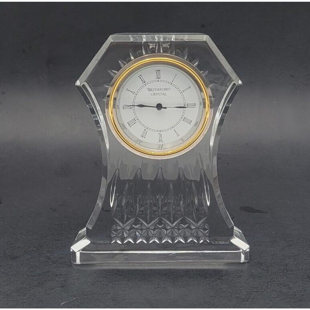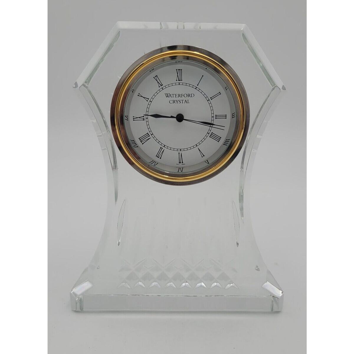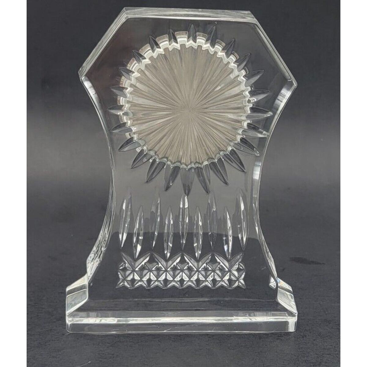 This stunning Waterford Crystal Lismore Clock is a must-have for any collector or fan of luxury decor. The clock stands at 6.5 inches tall and features intricate detailing that is sure to impress. It is signed by Waterford Irland and is a vintage piece, perfect for adding a touch of elegance to any mantle or tabletop.