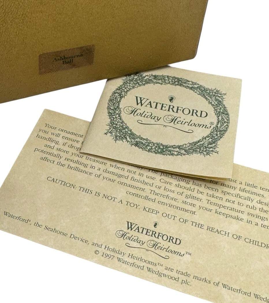 - Waterford Holiday Heirlooms Ornament Ashbourne Christmas Ball Hand Blown Vtg Box