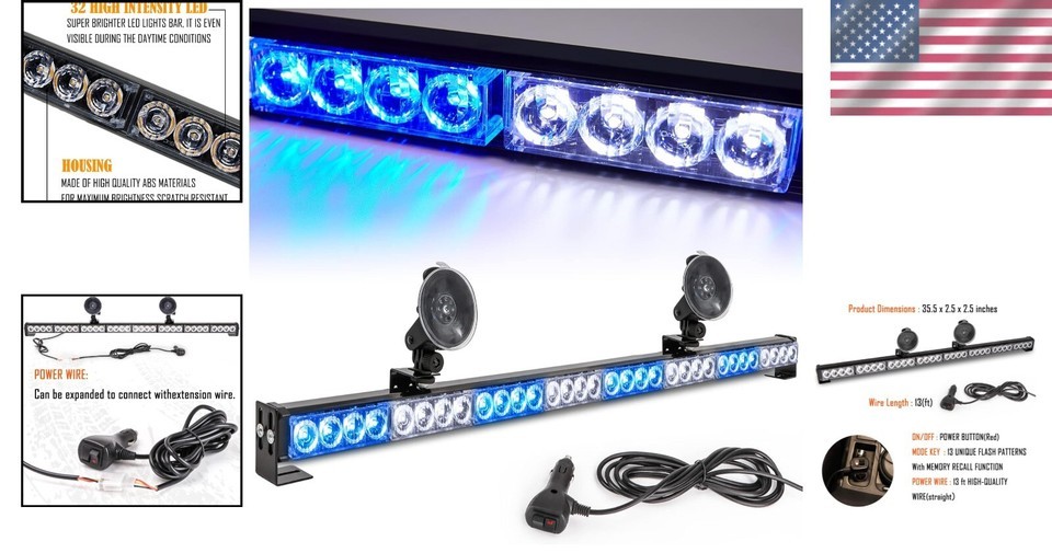 - Waterproof 35.5-Inch Emergency Light Bar for Vehicle Safety & Traffic Control