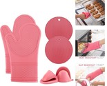 - Waterproof and Easy-Clean 6-Piece Silicone Oven Mitts - Pink Cooking Essentials