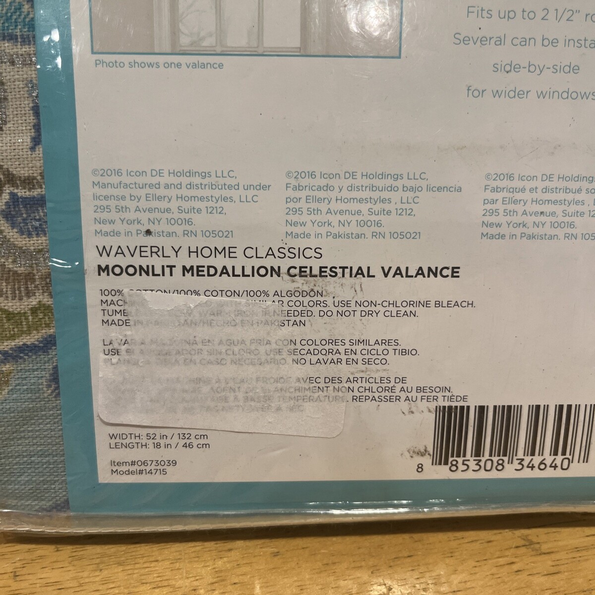 The Waverly Moonlit Medallion Window Treatment Valance is a classic and stylish addition to any room. Made from 100% cotton in a beautiful teal/aqua multicolor, this 18x52 inch valance features a medallion pattern and a rod pocket heading for easy installation. With a light to medium weight, this valance is perfect for adding a touch of elegance to your windows. Designed by Waverly in 2016, this valance is sure to enhance the look of your home with its timeless style.