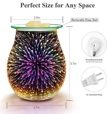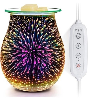 Wax Melt Warmer with Timer- Electric 3D Glass Wax Fireworks-Timer & Dimmer
