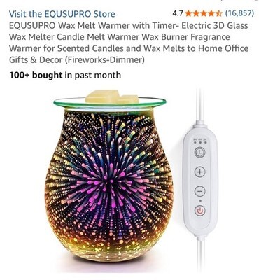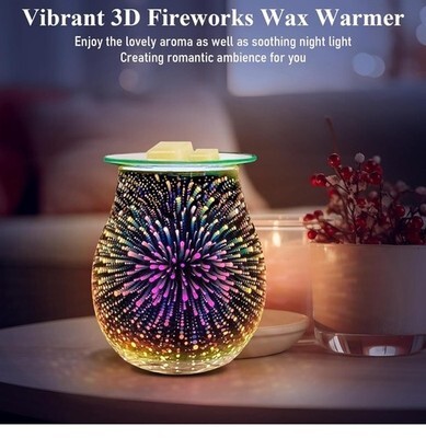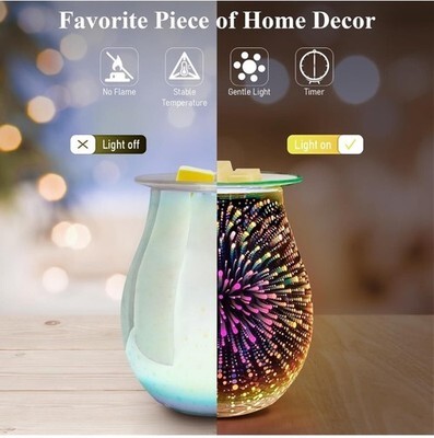 - Wax Melt Warmer with Timer- Electric 3D Glass Wax Fireworks-Timer & Dimmer