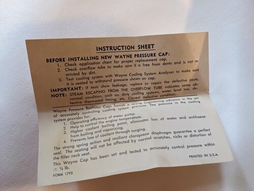 - Wayne Radiator Pressure Cap WR-8 USA 48 53 Chevy Ford Pontiac Replacement NOS