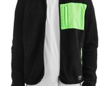 WeSC Moritz Mixed-Media Sherpa Slim Fit Fleece Jacket Black Neon Green-Size XL