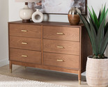 Features: Mid-Century Dresser Constructed from Rubberwood and Engineered Wood Six (6) interlocking drawers offer ample space to organize clothes, linens, and more Slim metal handles stand out brilliantly against the wood Tapered legs with metal caps provide excellent stability in sleek style Rectangular tabletop serves as a fantastic display area Set Includes: One (1) Dresser