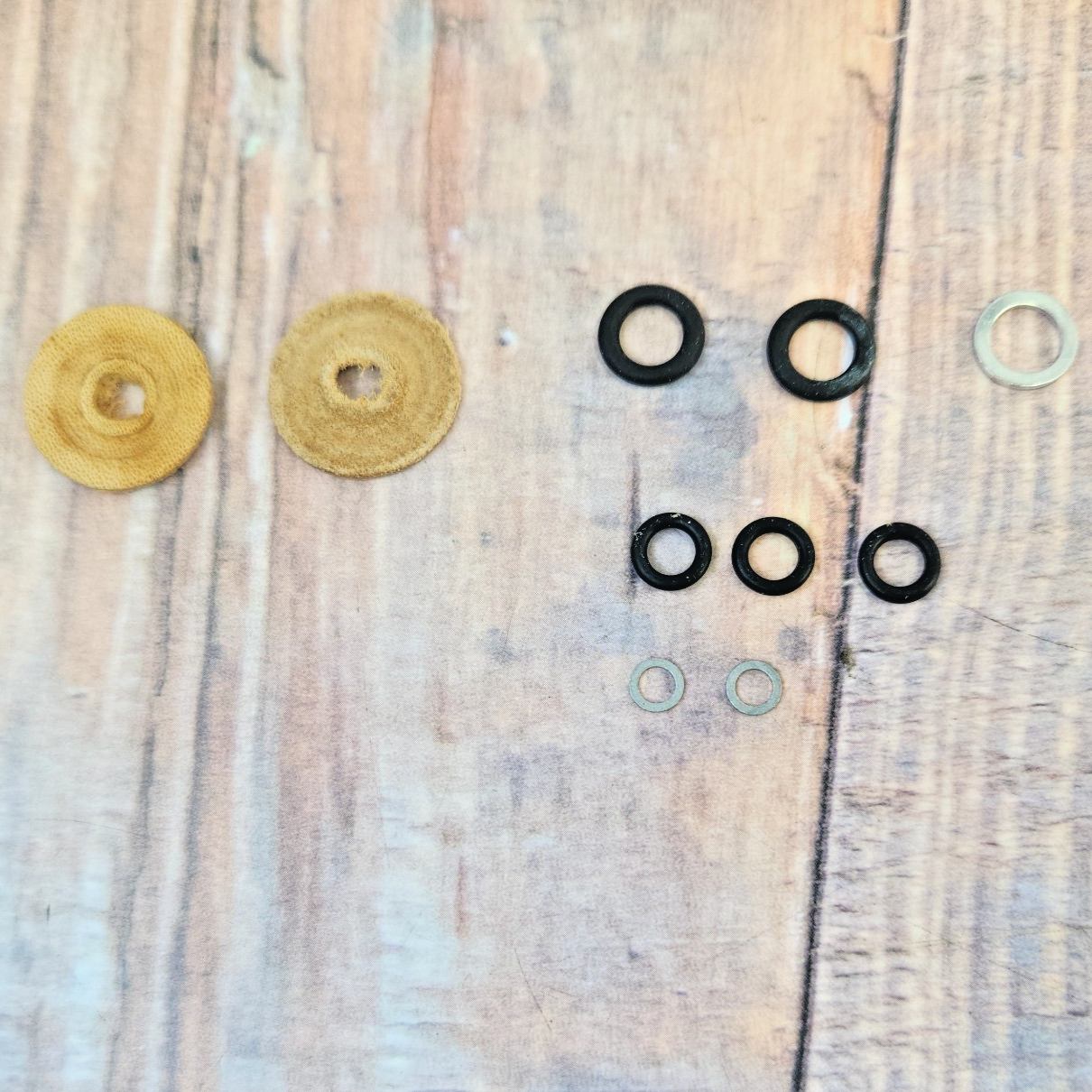 Exact item set is shown. Vintage new old stock gasket set with original packaging, opened only for photographs. Paper, rubber, and metal pieces. Made in Italy. No returns on installed items or partial sets. Please review our business policies in our store for information regarding returns, shipping and warranties.