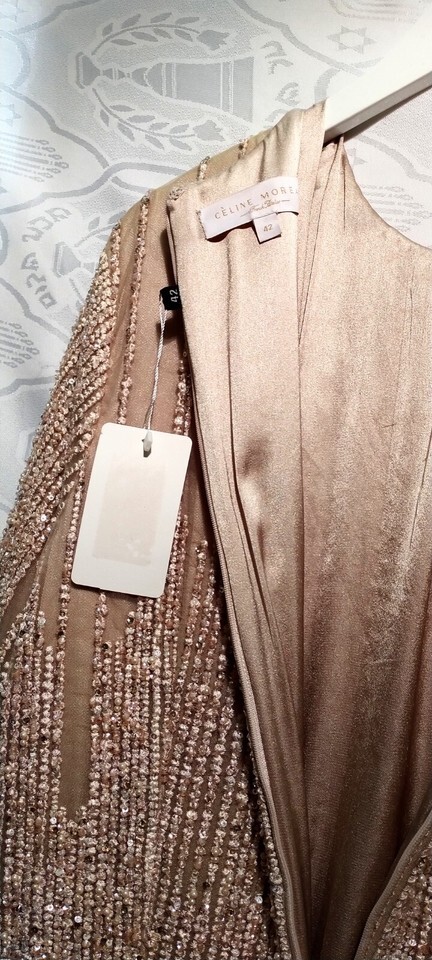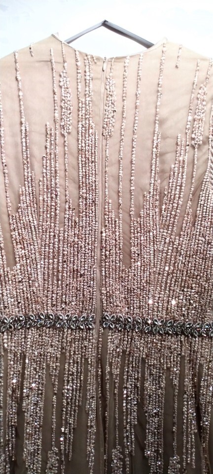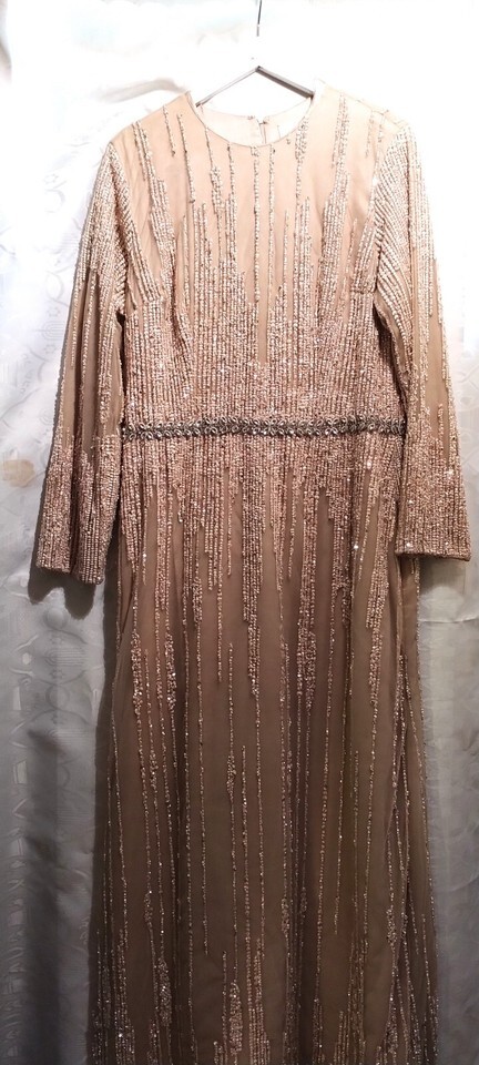 Elevate your special occasions with this exquisite Wedding Gown in a tasteful creme beige hue, crafted by the renowned designer Celine Moreau. The gown features a sophisticated boat neck and long sleeves, complemented by delicate sequin detailing that adds a touch of elegance to the overall design.