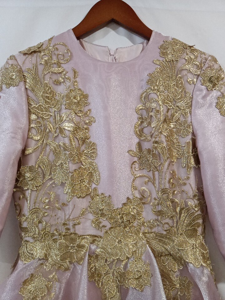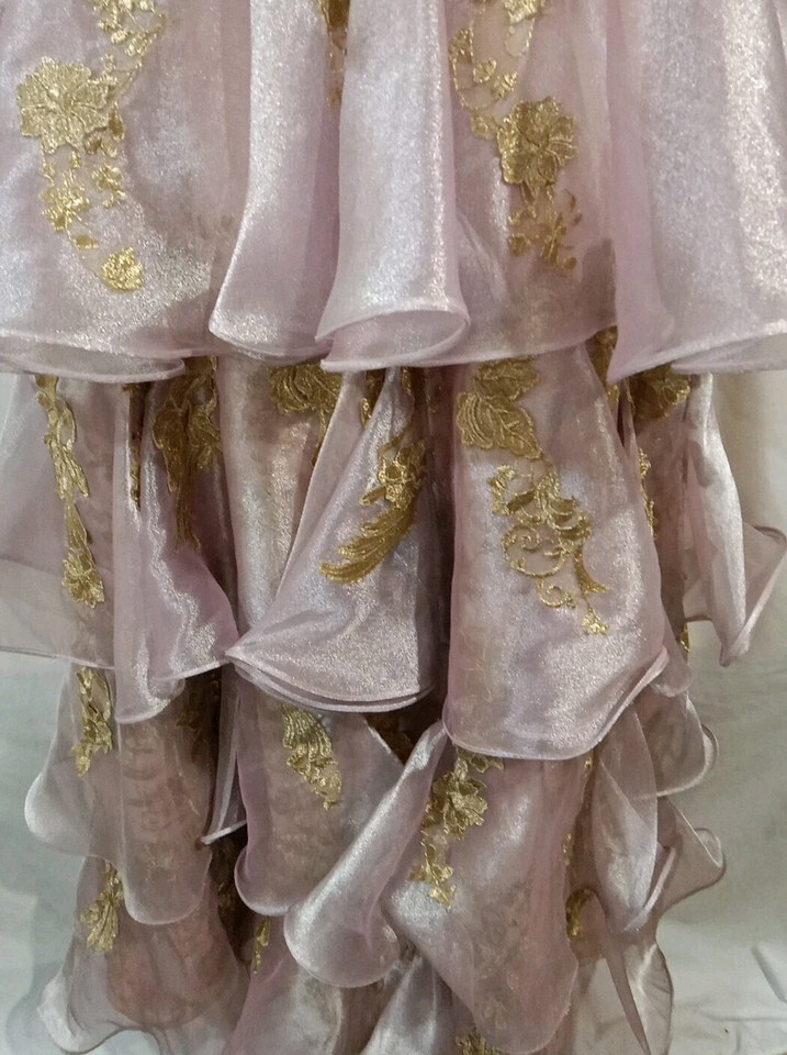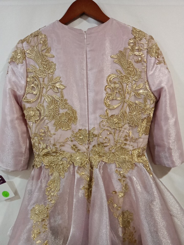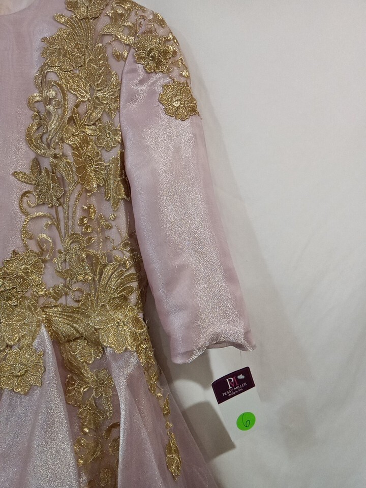 Wedding Gown Size 6 Sparkle Pink Color Long Sleeves Full Length Ruffles