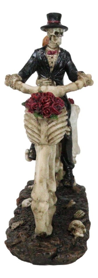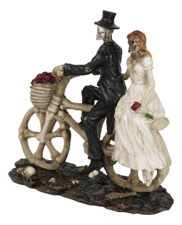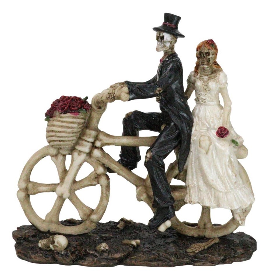 - Wedding Skeletons Bride And Groom Riding Skeletal Bones Roses Bicycle Figurine