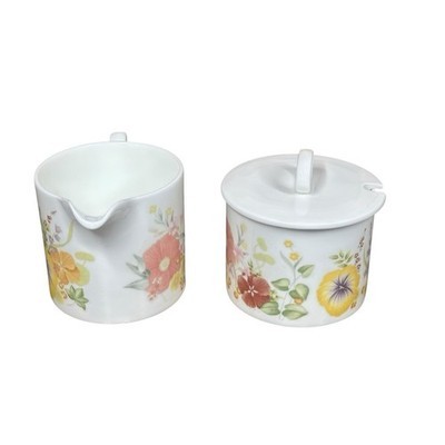 - Wedgwood Summer Bouquet Creamer & Sugar Bowl Set Bone China England Vtg Floral