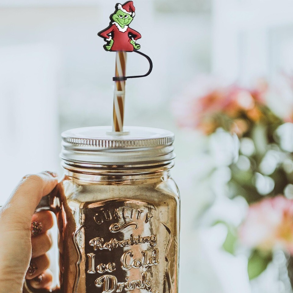 - Wehnniee 8Pcs Christmas Straw Toppers 0.32in 8mm Cartoon Caps Reusable