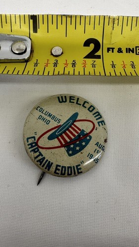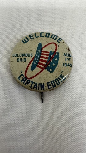 This unique collectible pin is a must-have for any fan of vintage memorabilia. Celebrating the safe return of Captain Eddie on August 1st, 1945, this multicolored button is a piece of history that deserves a place in your collection. The intricate design and high-quality craftsmanship showcase the attention to detail that was put into this pin, making it a valuable addition to any collector's showcase. The year of manufacture, 1945, adds to the historical significance of this piece, making it a true gem for any collector of pins or vintage memorabilia.