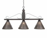 Here is a new kitchen island hang light, this is called the Wellington light and is made of wood and metal and is handcrafted , it Features a heavy wood crossbar with wrought iron scroll brackets, the Large Wellington Hanging Light is accented with punched tin Kettle Black shades. It is Direct wired with three standard sockets, each taking up to a 60 watts max bulb per socket. (bulbs not included) it Includes 3 feet of chain, 7 feet of wire, and a matching ceiling plate kit. Additional chain may be ordered. It has a Textured espresso body color. And is Handcrafted in United states. This light is UL listed and has a 5 year guarantee. Below is description on it, and also check out my many other nice lighting and decor.