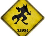 Werewolf Xing Novelty Mini Metal Crossing Sign. 8.5" Mini Crossing Sign, made of the highest quality aluminum for a weather resistant finish. It is lightweight and durable and has pre-drilled holes for quick and easy mounting. Personalize with ribbon, wire or string. Individually shrink-wrapped and proudly made in the USA.