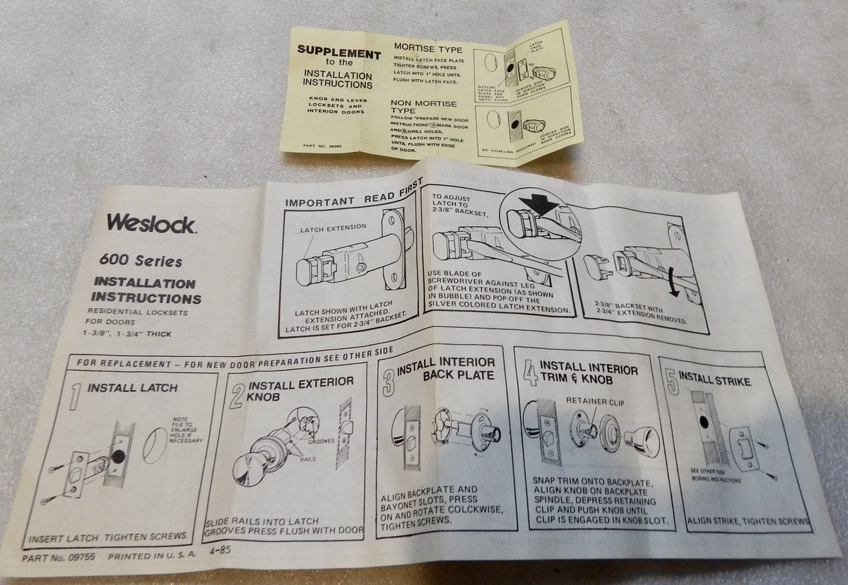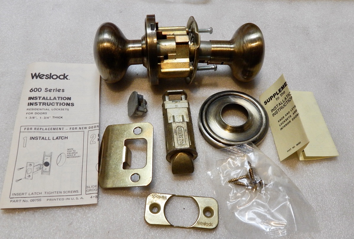 - Weslock Passage Hall/Closet Door Knobs Antique Brass Design NIB 6M