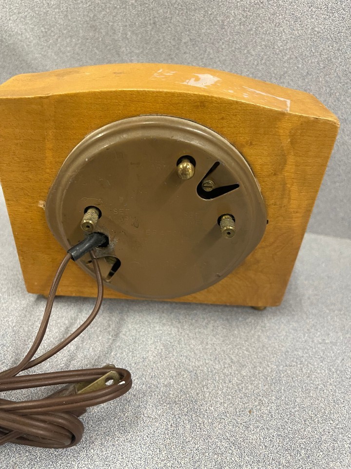 Westclox Sheraton Electric Alarm Clock ~ S7-N ~ Made In USA ~ Maple Wood