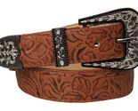 - Western Cowboy Belt Cognac Tooled Leather Removable Buckle Cinto Rancho Vaquero