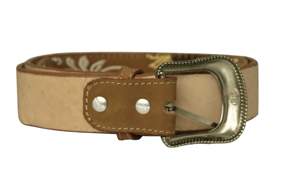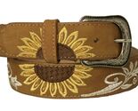 - Western Cowboy Belt Honey Brown Leather Removable Buckle Sunflower Embroidered