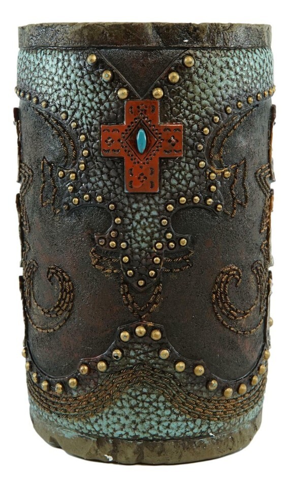 ? This Western themed bathroom vanity sculpture is made of designer polyresin, hand painted and polished individually. Our artisans have transformed the resin sculpture to resemble tooled leather.