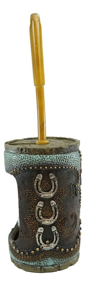 - Western Cowboy Triple Horseshoes And Cross Toilet Brush With Sanitary Holder Set