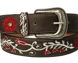 - Western Dress Cowboy Belt Dark Brown Leather Removable Buckle Floral Embroidered