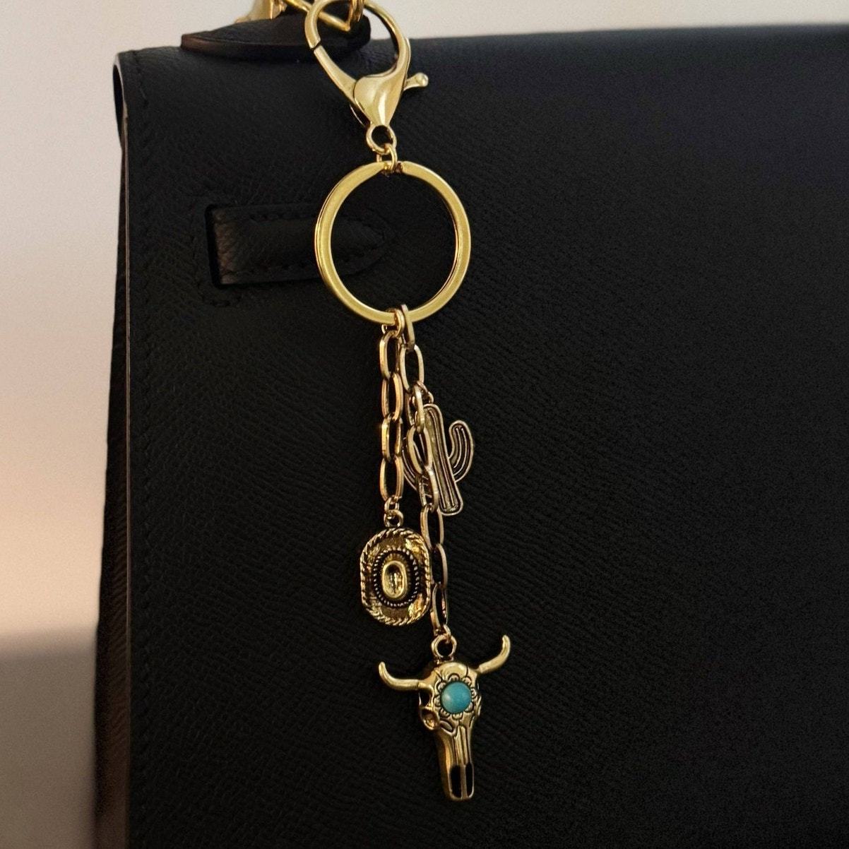 - Western Rodeo Bag Charm Keychain Bull Skull Cactus Cowboy Hat