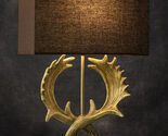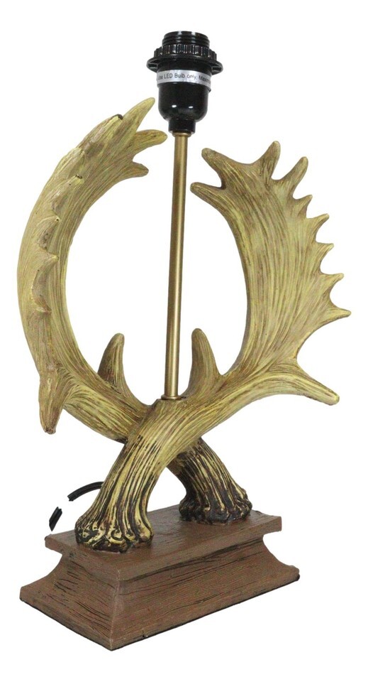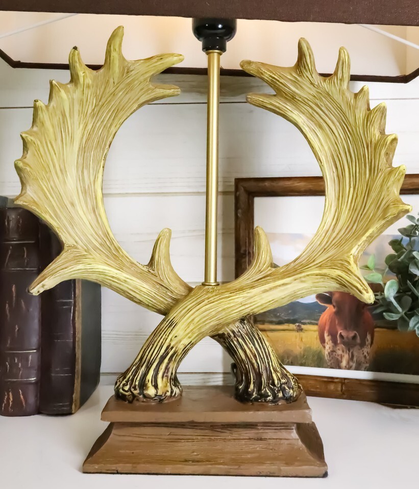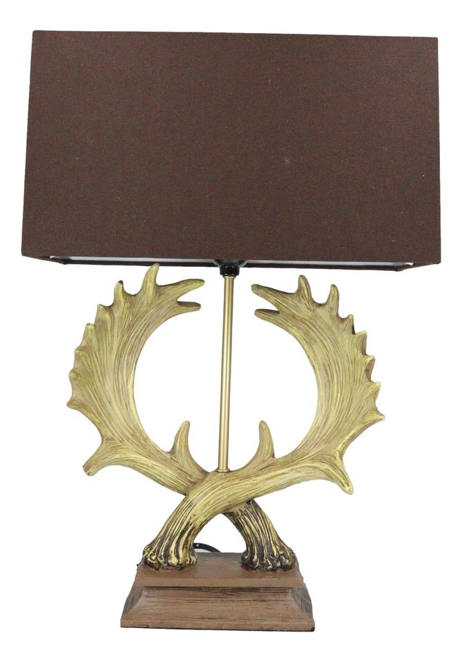 ? Light up your home with elements of the outdoors. It's an upscale touch of mountain retreat style that is sure to be a big conversation piece. This rugged entwined antlers will create a woodsy lodging feel that is sure to add an element of warmth to any room. This table lamp is an easy way to elevate your room's decor. Simply attach the brown rectangular lamp shade to the base and let the wildlife glow fill your room.
