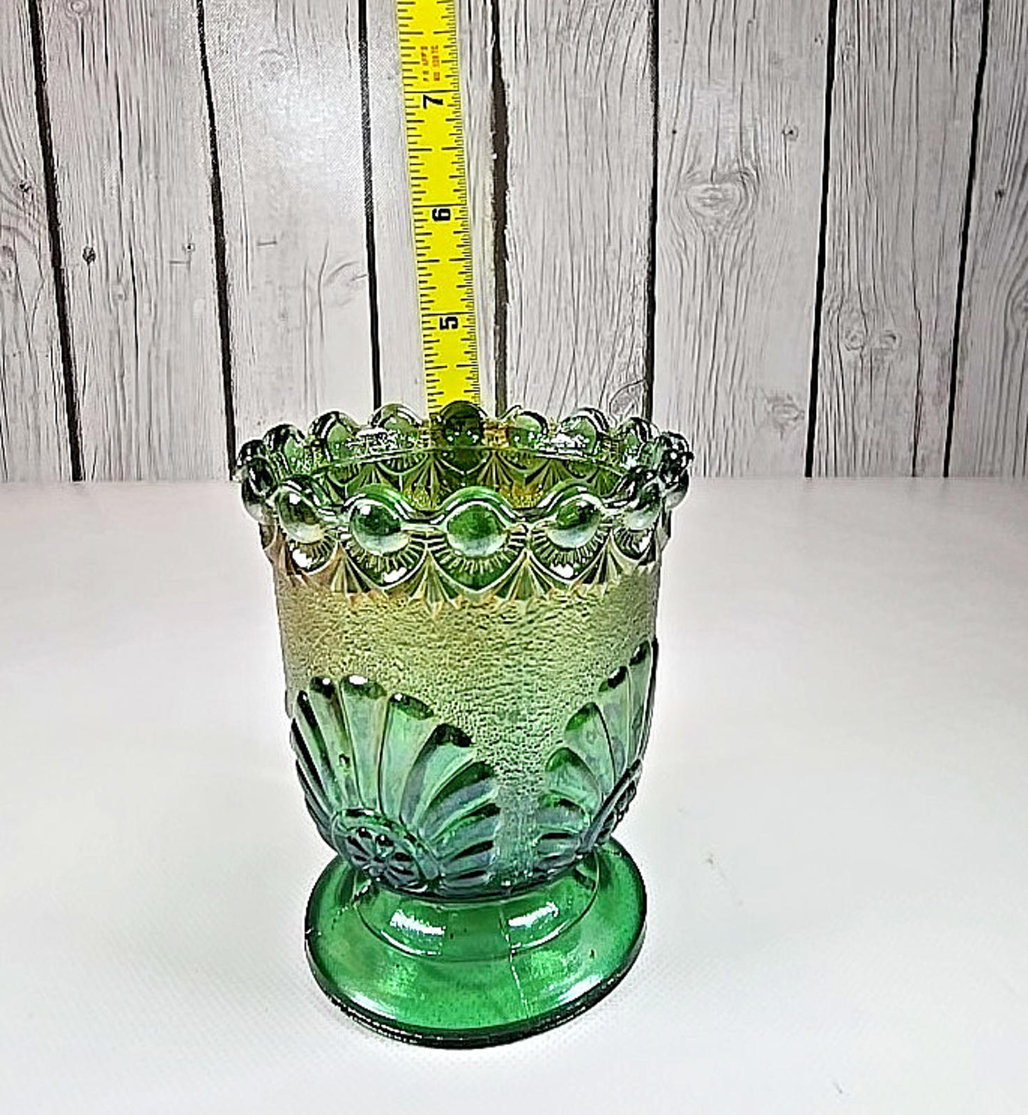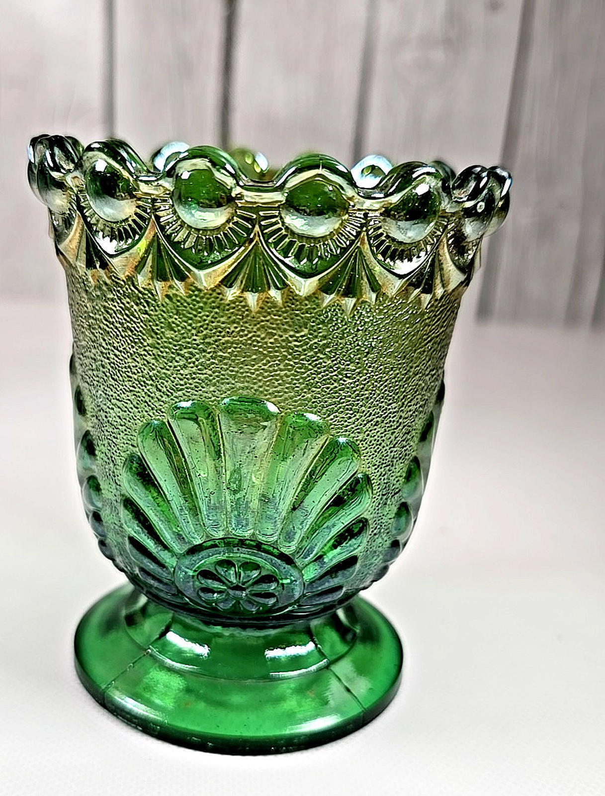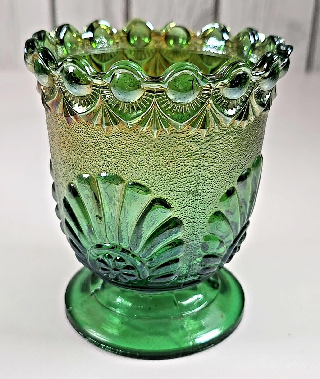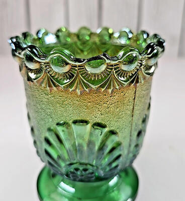 - Westmoreland Iridized Green Carnival Shell & Jewels Open Sugar Dish 1893 Antique
