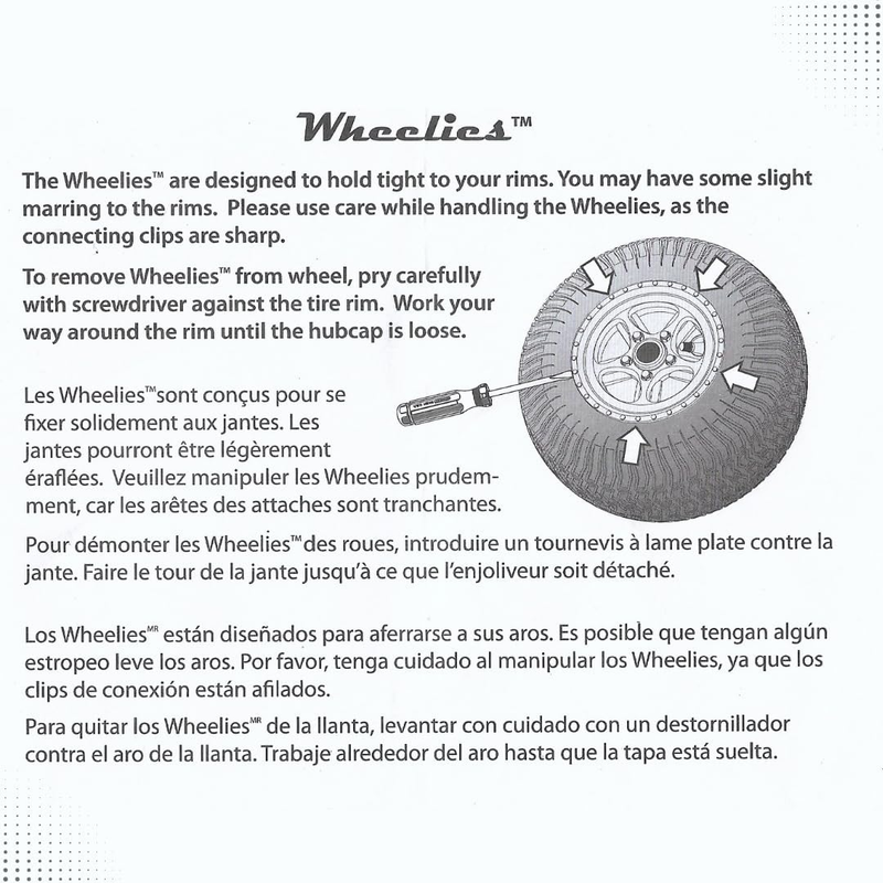 SNAP TO FIT ON THE RIMS- There are not nuts that you have to screw into place, the Wheelies easily snap into place and stay onto the rim