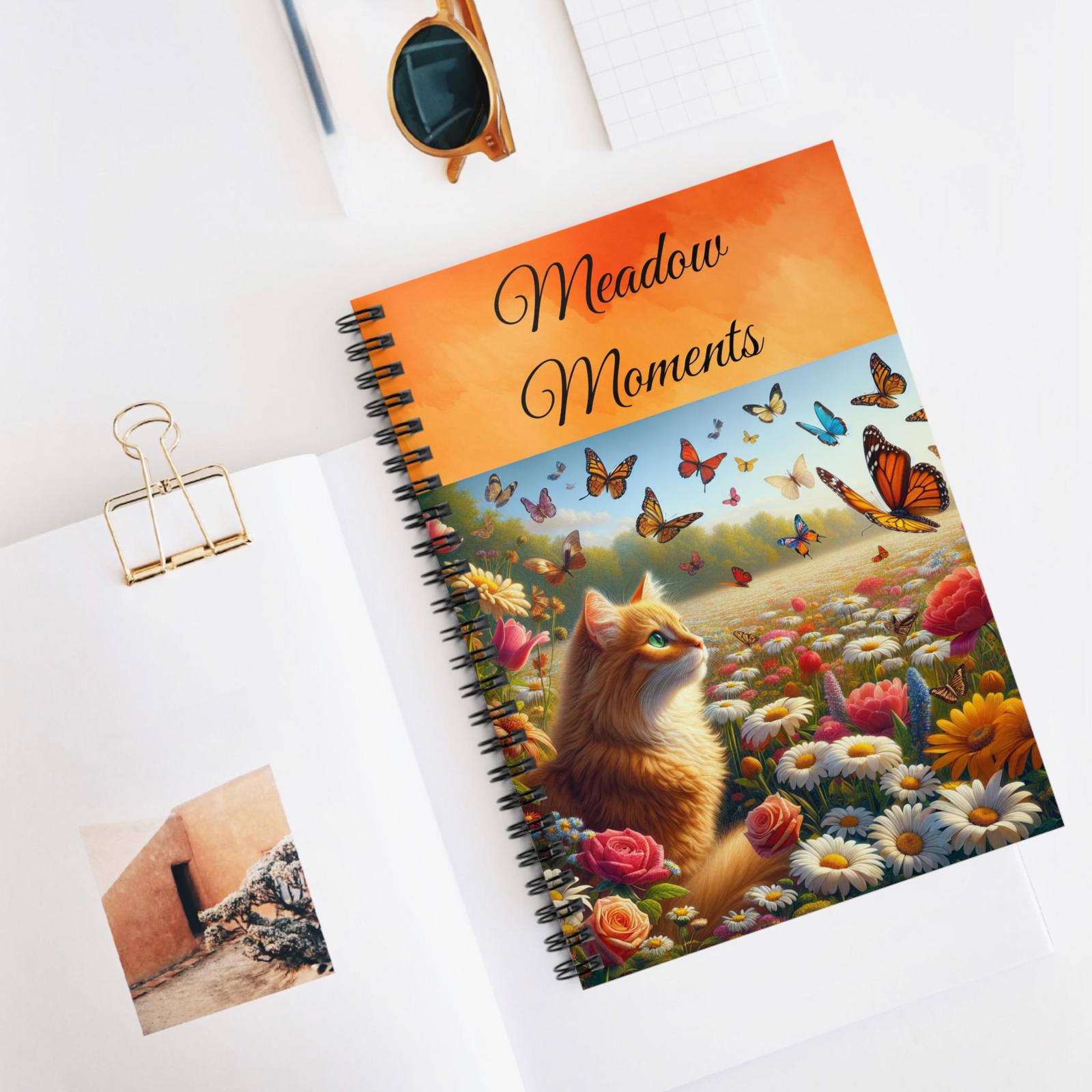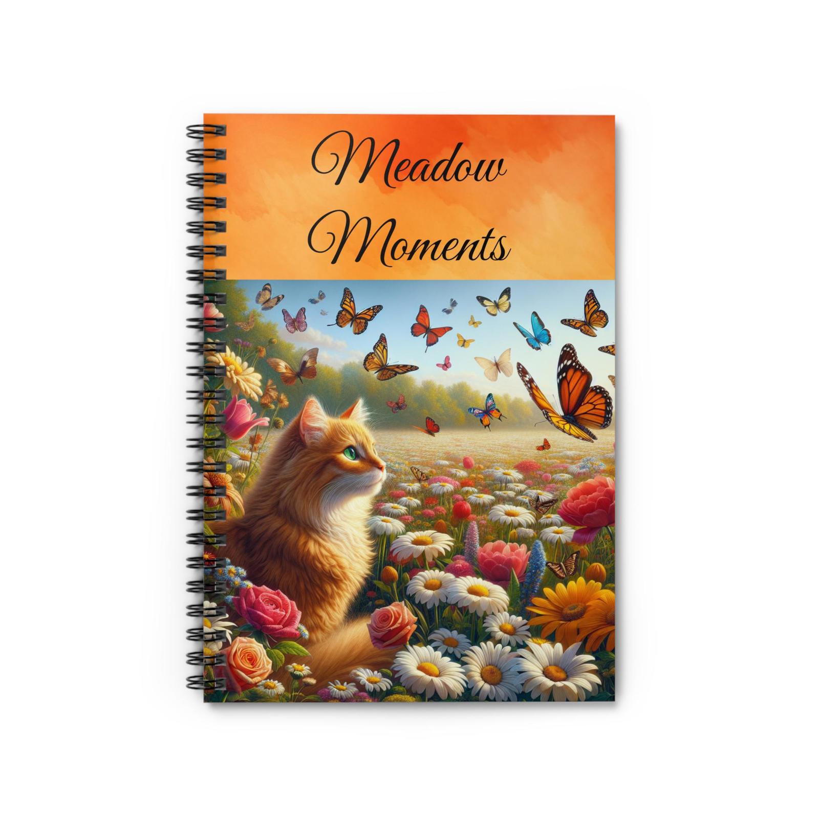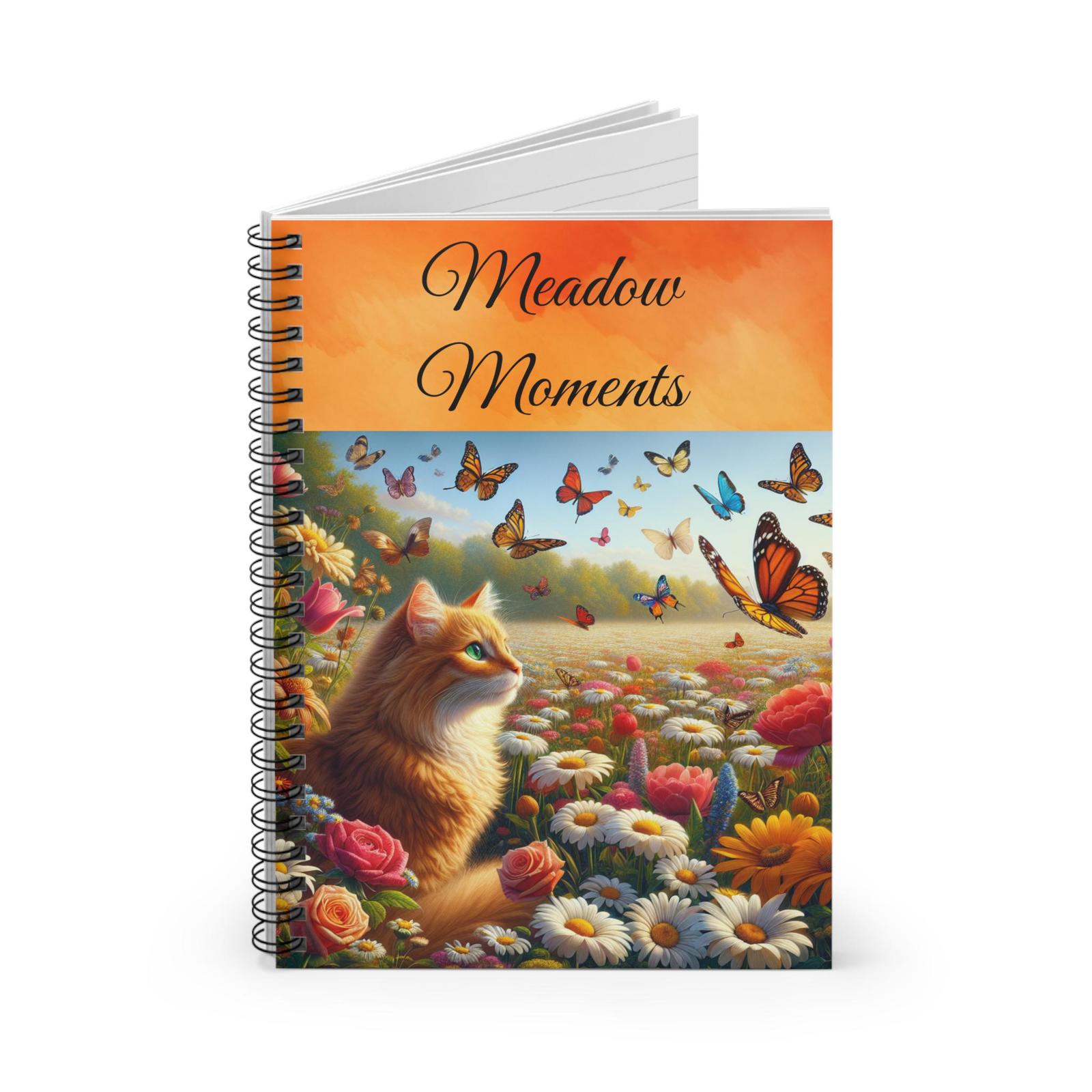 - Whimsical Cat Themed Spiral Notebook, Meadow Moments Journal, Cute Writing Pad,