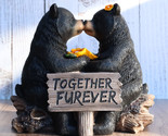 - Whimsical Wedding Vows Black Bear Couple Kissing By Tree Log Statue 7" Tall
