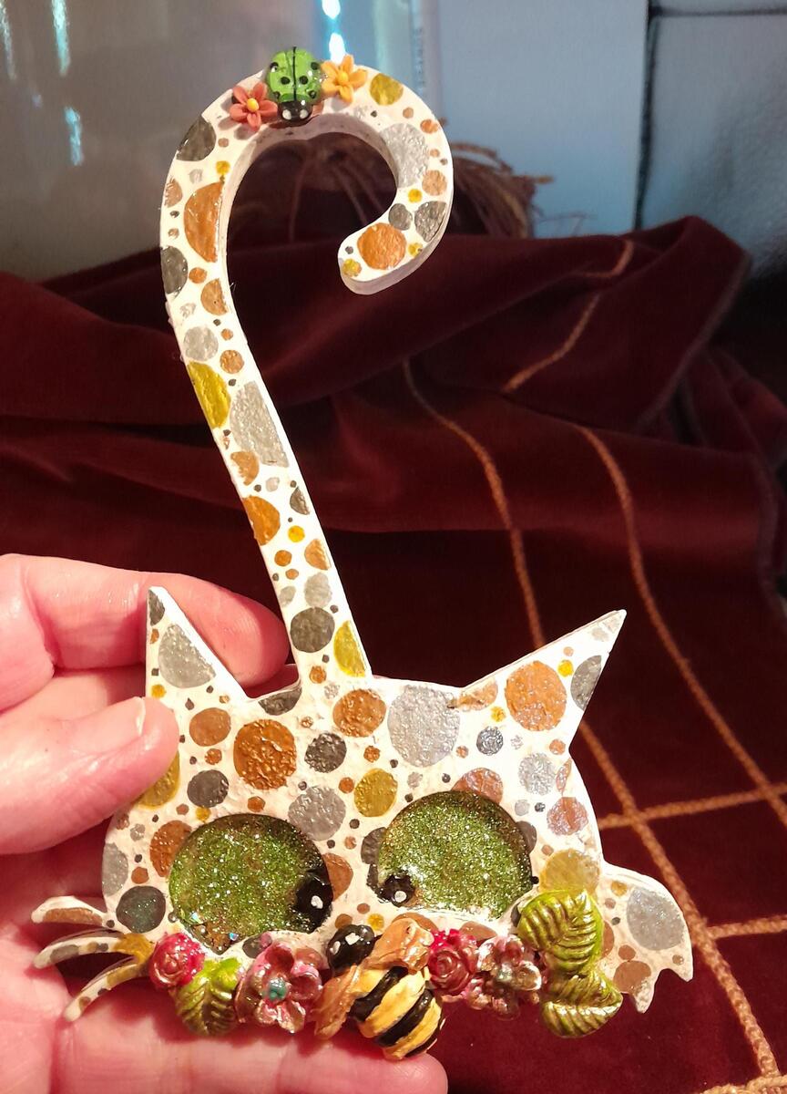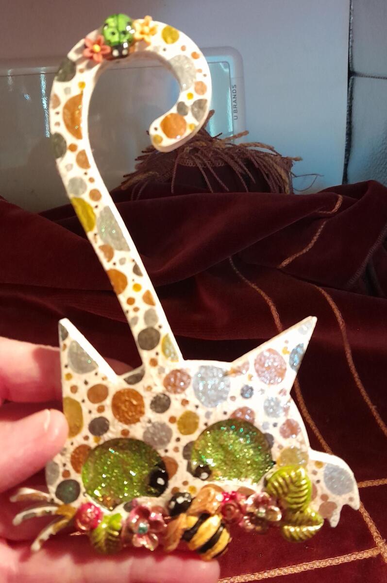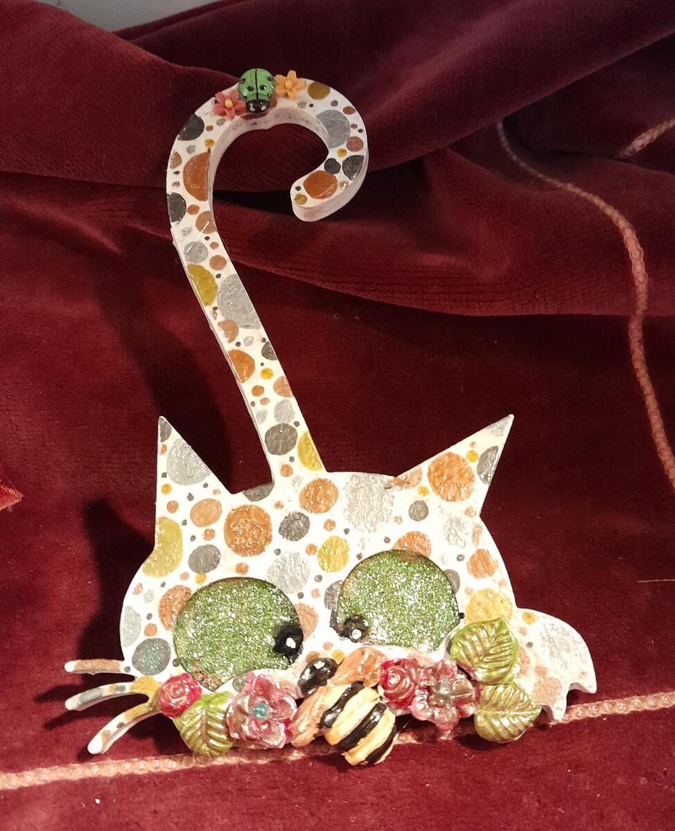 - Whimsy Cat Polka Dot Mixed Media Wall Hanging Shelf Mantle Unique Handmade Bee H