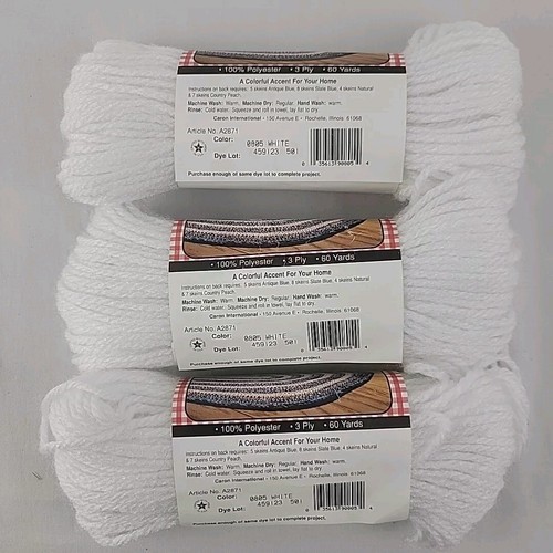 White Aunt Lydias Craft & Rug Yarn 3 Skeins SAME DYE LOT Polyester 60 Yd 1.37 oz