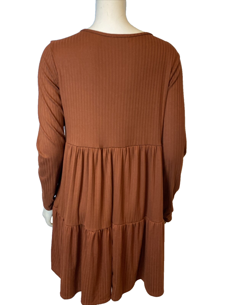 White Birch Rust V Neck Long Sleeve Ribbed Knit Tiered Dress Size L