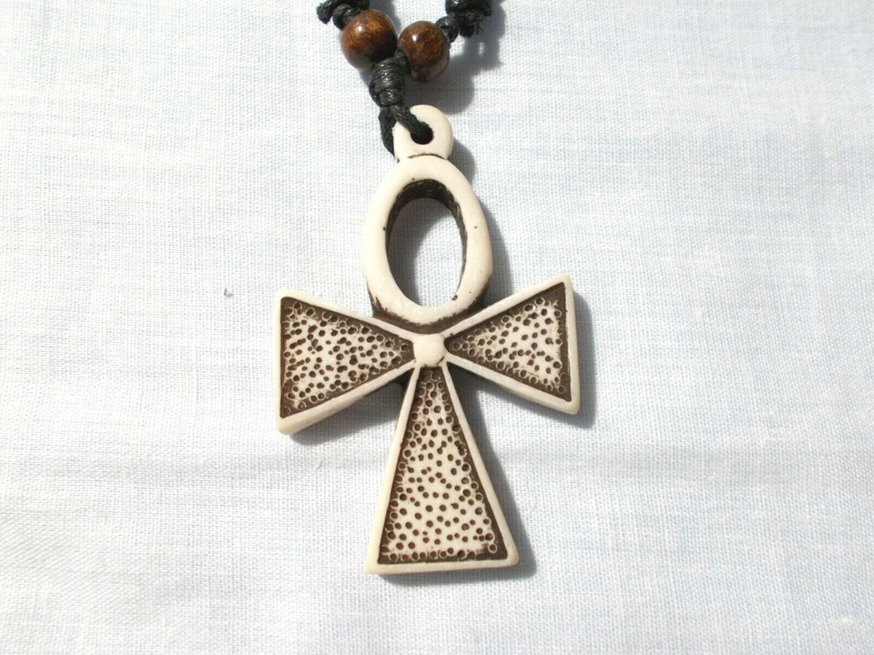 - WHITE COLOR EGYPTIAN ANKH SHAPED RESIN PENDANT 34" ADJUSTABLE CORD NECKLACE
