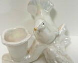 - White Dove Bird Iridescent Ceramic Candle Holder Vintage 1980-90s 3.5" PorcBin1