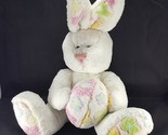 White Easter Bunny Rabbit Holding Egg Floral Ears Feet Plush Stuffed 19" Long