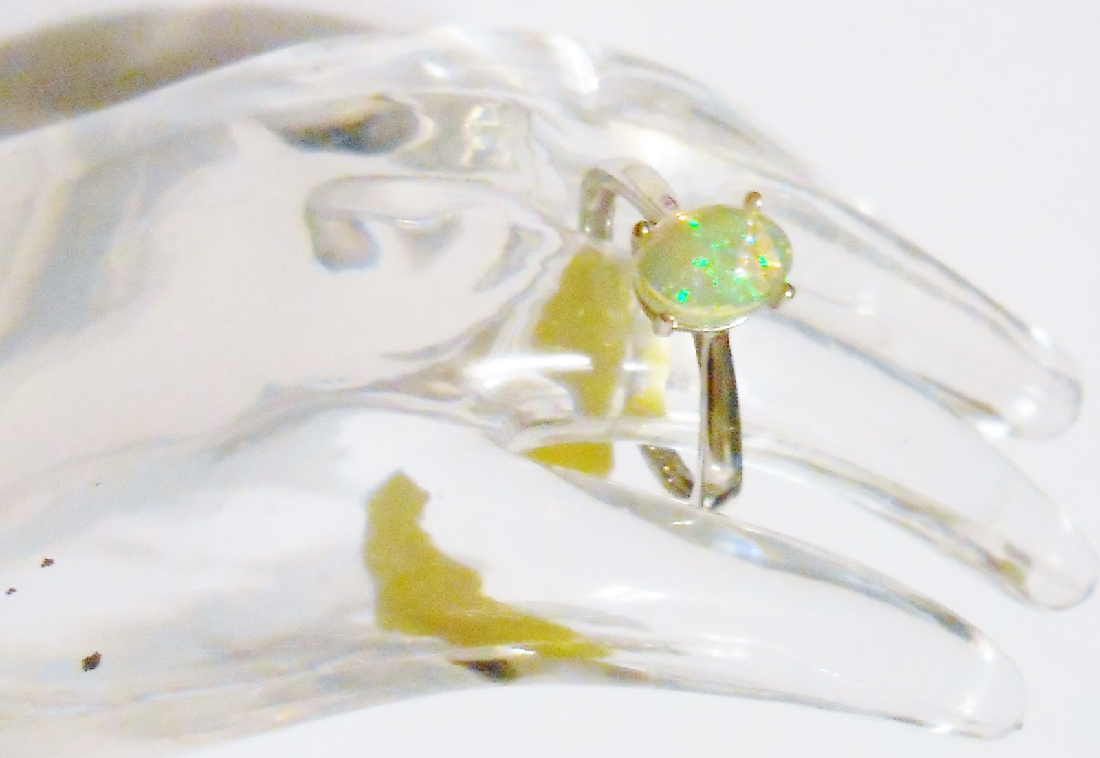 ETHIOPIAN WELO OPAL OVAL SOLITAIRE RING, PLATINUM OVERLAY 925 NICKEL FREE STERLING SILVER, SIZE 7, 0.75(TCW) - NEW!!